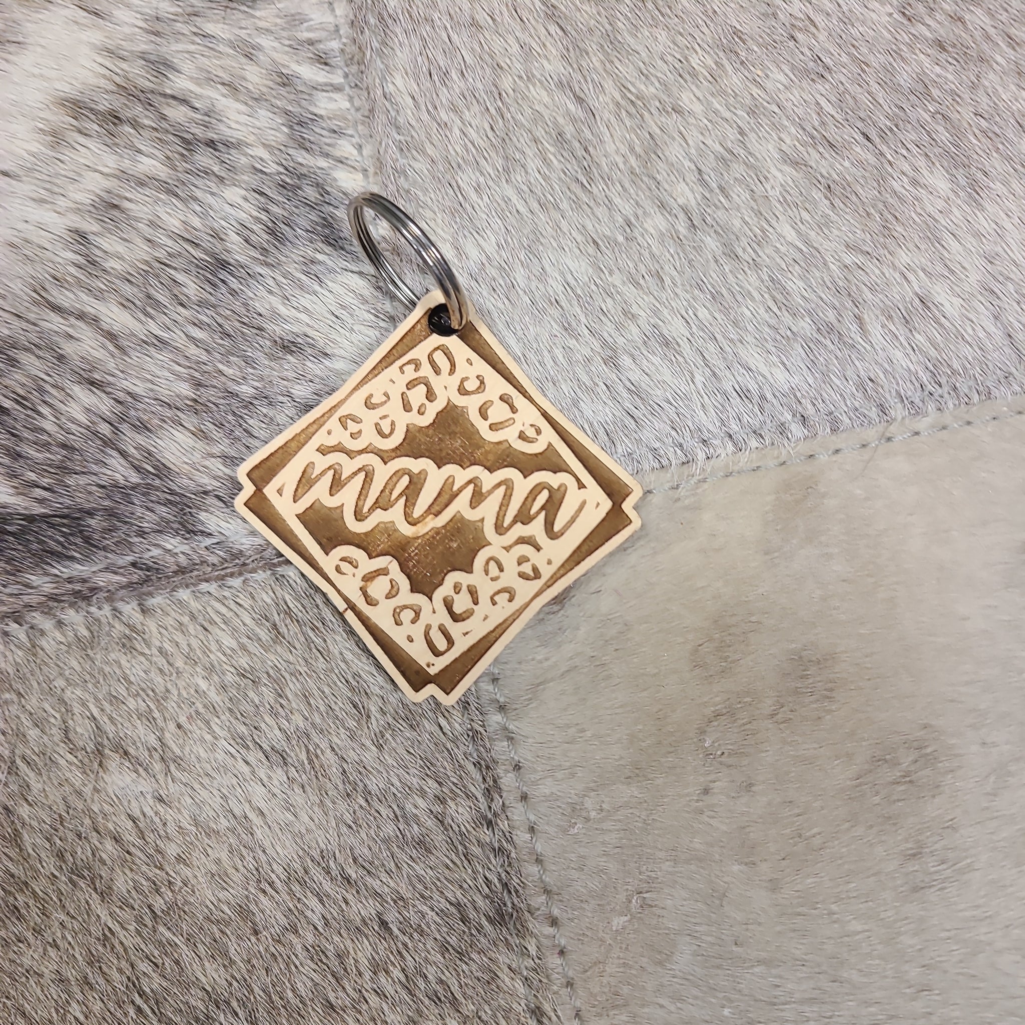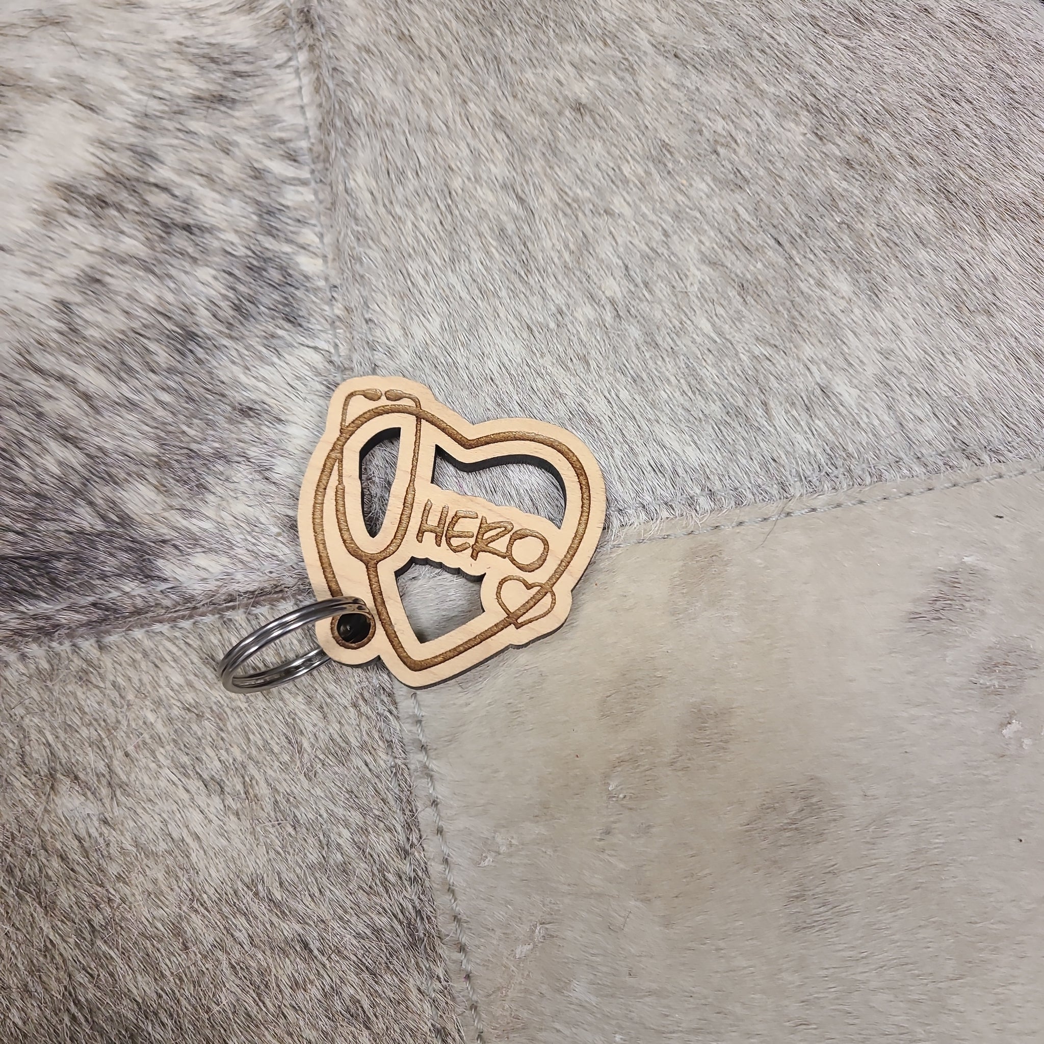 Wooden laser engraved keychain.