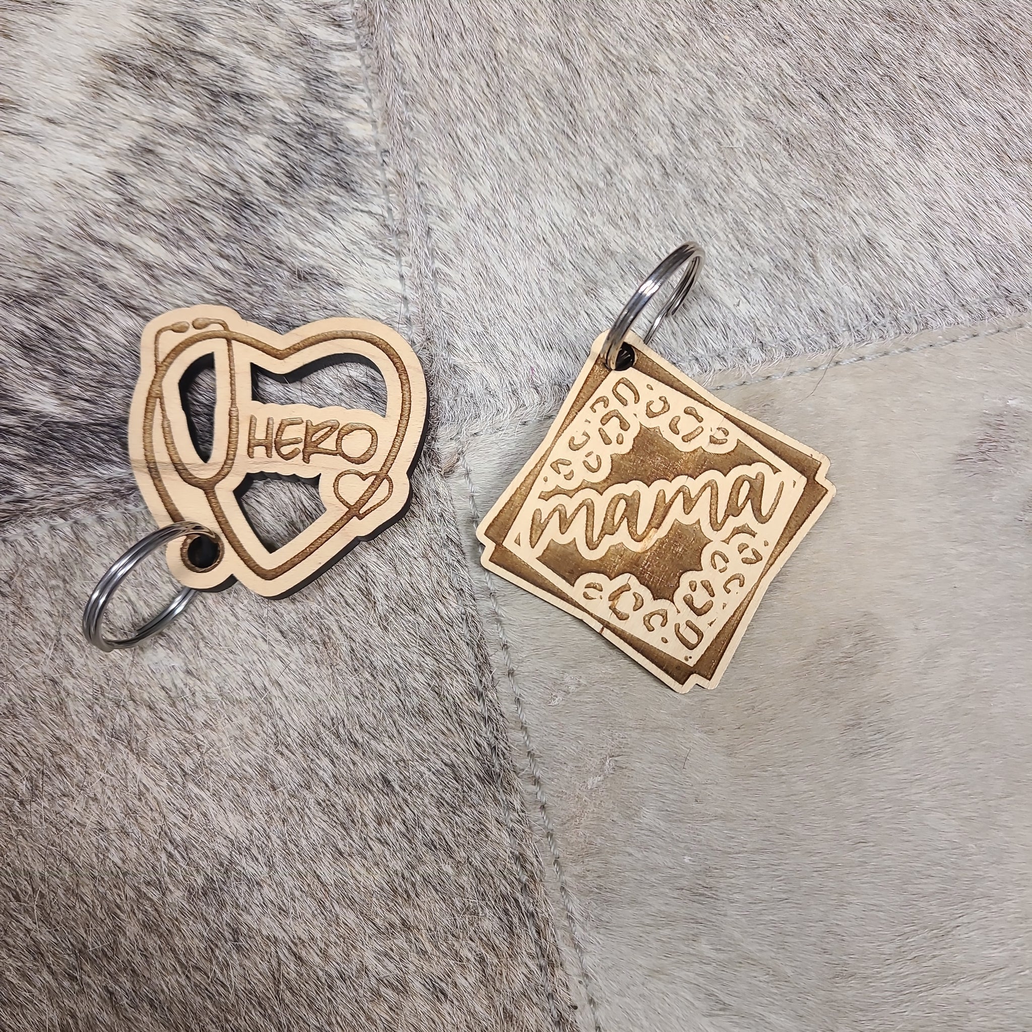 Keychains are approximately 2" x 2"